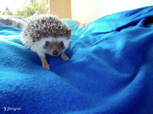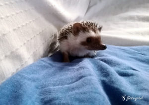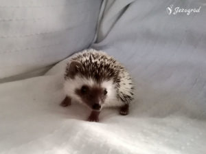 Jeżyk o bardzo miłym usposobieniu tak jak wszystkie jeżyki z miotu B. Naszym zdaniem z tego jeżyka wyrośnie typ – „weź i przytul igłę”.