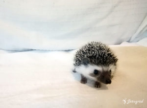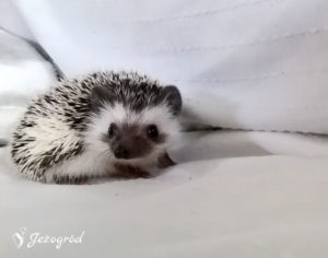 Zakładamy, że z tego jeżyka wyrośnie typ przytulaska, który jest bardzo odważny i nie boi się człowieka – bez problemu śpi na rękach i nic jej nie przeszkadza. Oaza spokoju 🙂