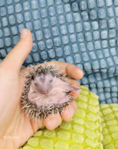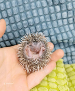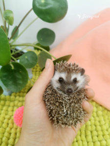 Igiełki: ciemne brązowe na całym ciele, może być typu Snowflake – czyli co któraś igiełka biała. Może być podobna do mamy Wasabi, ale lekko ciemniejsza.