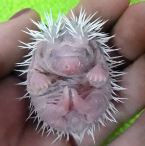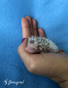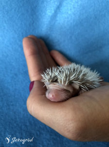 Najmniejszy jeżyk z miotu. Jako jedyny ma biały nosek.