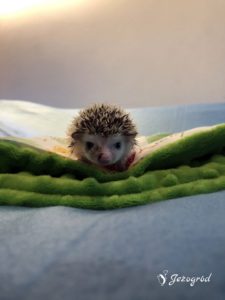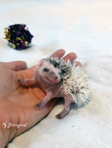 Jeżyk będzie identyczny jak tata miotu! Będzie miał maseczkę Split Face (pół na pół) być może większością białego noska 🙂 Również jak samiczki jest bardzo otwartym jeżykiem i mimo swojej małej wagi szybko rośnie i nie boi się niczego 🙂