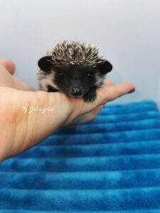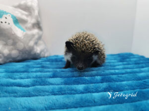 Jestem jeżem pigmejskim o ciekawskim i przyjaznym usposobieniu. Lubię poznawać nowe rzeczy, a moje małe łapki nigdy nie ustają w eksplorowaniu. Gdy tylko człowieki otwierają nasze terrarium, zawsze jestem jednym z pierwszych, którzy wyściubiają nos, żeby sprawdzić, co tym razem dla nas przygotowali. Uwielbiam ciepłe ręce i pełną miseczkę, ale nie pogardzę też dobrą zabawą z moim rodzeństwem.