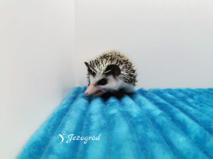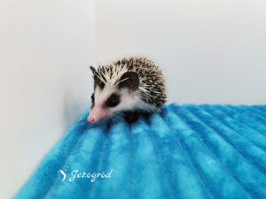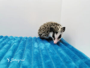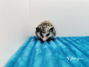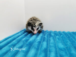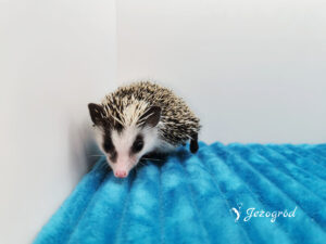 pół grzywki białe, pół ciemne – unikalny wygląd wśród jeży pigmejskich,