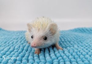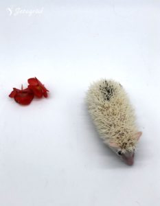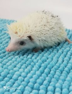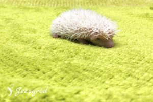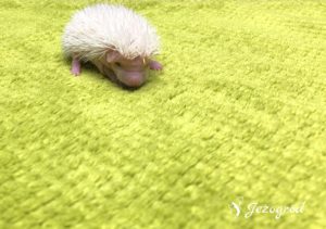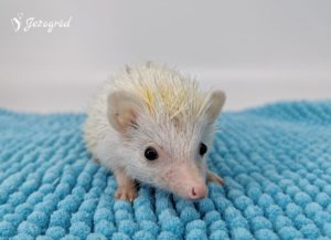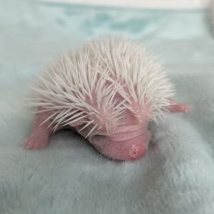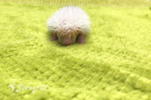 Igiełki: posiada pigment ciemnego koloru (grey), ale większość igieł jest mimo to biała (tzw. znaczenia Reverse Pinto, nie albinos!). Na środku grzbietu w okolicach tyłu jeżyka znajduje się tylko jedna „plama” ciemnych igiełek. Z wiekiem plama się troszeczkę powiększy, ale dookoła niej będą pewnie białe igiełki.