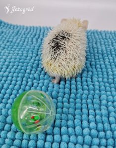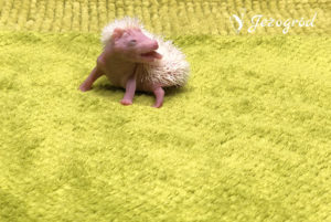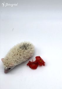 Bardzo przyjazny jeżyk, pomimo już otwartych oczu nie był płochliwy i chętnie „zwiedzał” nowe miejsca. Nie zwijał się w kulkę. Jeżyk prawdopodobnie do kochania i przytulania.