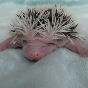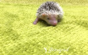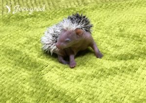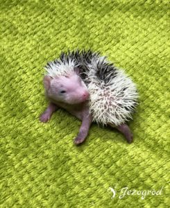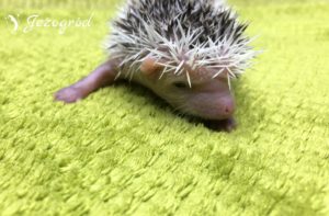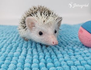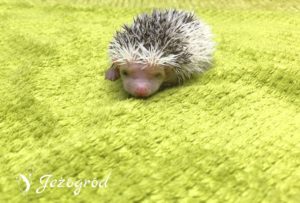 Igiełki: większość to ciemne igiełki – posiada pigment ciemnego koloru (grey). Białe igiełki są tylko po bokach i z tyłu jeżyka (znaczenia Pinto), ale z wiekiem mogą zniknąć – jeżyk będzie w większością miał ciemne igiełki. Dodatkowo białe igiełki są na razie na czole jeżyka (biała grzywka). Z wiekiem mogą się tutaj jednak pojawić miejscami ciemne igiełki.