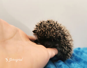 tu Iskierka – młoda samiczka jeża pigmejskiego, która od pierwszych dni udowadnia, że imię zobowiązuje! W miocie Arii i Kerberosa jestem tą, która dosłownie wygląda jak mała iskra nocy – moje ciemne oczka, ciemny pyszczek i przydymione ubarwienie nad oczami sprawiają, że wyglądam jak jeżyk ninja albo bohaterka nocnych przygód. Rodzeństwo mówi, że w ciemności wtapiam się w cień szybciej niż reszta, a ja po prostu lubię wyglądać stylowo.