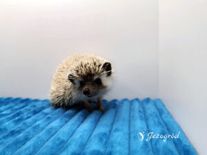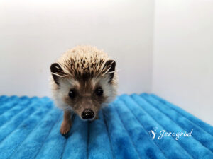 mam na imię Jasio i jestem młodym samcem jeża pigmejskiego – jedynakiem, więc od pierwszych dni mam status VIP. Mama Wilma i tata Yericho mówią, że wyrosnę na prawdziwego gentlemana, bo odkąd pamiętam, wszystko robię spokojnie i z rozwagą. Jako jeż pigmejski bardzo lubię kontakt z człowiekiem, ciekawią mnie ręce, zapachy i dźwięki, a świat oglądam z miną kogoś, kto dokładnie analizuje sytuację, zanim ruszy dalej.
