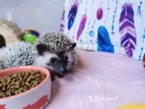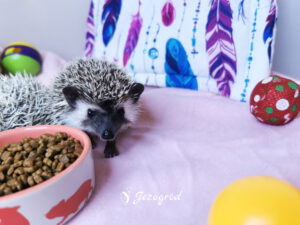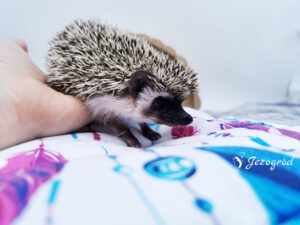 Podobno wyglądam jak mały bohater z bajki – cynamonowe ciemne umaszczenie i dwa wyraźne paski na czole sprawiają, że trudno mnie pomylić z innym jeżem. Jako jedynak szybko nauczyłem się samodzielności, ale nie oznacza to, że nie cenię towarzystwa – wręcz przeciwnie, bardzo chętnie spędzam czas z człowiekiem i świetnie odnajduję się na rękach.