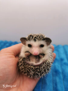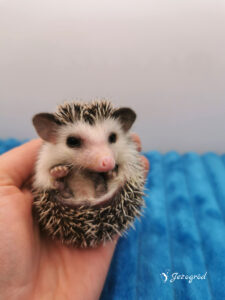 To jest pierwszy miot zarówno dla Etny, jak i Raymana 🥰. Oboje wyróżniają się naprawdę wyjątkowym umaszczeniem – Etna ma cudny różowy nosek i wyraźną maskę na pyszczku, a Rayman dodatkowo zachwyca białymi uszkami i również różowym noskiem. Jesteśmy ogromnie ciekawi, jakie maluszki przyniesie to połączenie – liczymy na łaciate jeżyki z białymi plamkami, może białymi uszami, a jeśli wszystkie noski okażą się różowe… będzie po prostu bajka 🤍✨ Maluszków spodziewamy się w marcu 2026.