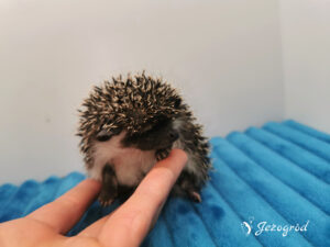 Powoli uczę się świata i kontaktu z ludźmi – wiem już, że ręce człowieka to bezpieczeństwo, ciepło i coś pysznego od czasu do czasu. Jeśli szukasz młodego jeża pigmejskiego z hodowli, który będzie spokojnym towarzyszem – możliwe, że właśnie na Ciebie czekam 💛