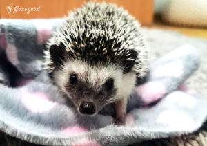 Przyjechała do nas z hodowli ze Śląska. Możemy ją określić jako raczej grzeczną i czystą jeżynkę (porównując do aktualnych pozostałych). Żywieniowo przyzwyczaiła się chyba do wszystkiego bez większych problemów, także jest jedną z jeżynek lubiących prawie „wszystko”. Doskonale wychowuje swoje maluszki i stara się zawsze być troskliwą mamą. Do obcych też od jakiegoś czasu ma „zdrowe” podejście i nawet da się pogłaskać 🙂