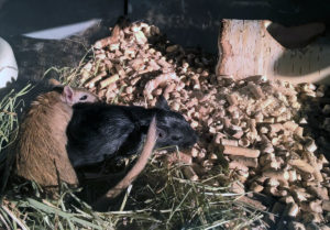 Jeże z naszej hodowli są wychowane na kocykach i podkładach. Nie tolerujemy trocin, które zapylają i wysuszają skórę jeży. Terraria, w których jeżyki mieszkają są utrzymywane w należytym porządku, gdyż mieszkają razem z nami w pokoju (a nie w ciemnej piwnicy). W związku z czym są przyzwyczajone też do codziennej obecności człowieka i hałasów domowych (telewizor, odkurzacz etc.). Każdy maluch tak jak i zdolna jeżowa mama stara się korzystać z kuwety i całkiem nieźle im to wychodzi 🙂