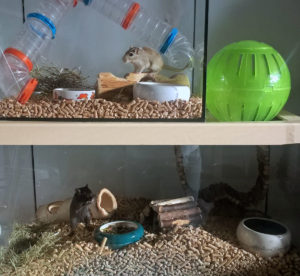 Nasza wspólna przygoda z opieką nad zwierzakami rozpoczęła się od prezentu mikołajowego – niewielkiego 30 litrowego akwarium z rybkami. Niedługo potem, bo już niespełna miesiąc później pojawił się „większy brat” – akwarium 150 litrów. Aktualnie opiekujemy się trzema akwariami, parą myszoskoczków oraz oczywiście hodowlą Jeżogród [Przyp. Aut.: „gdzie ja popełniłem błąd ?”].